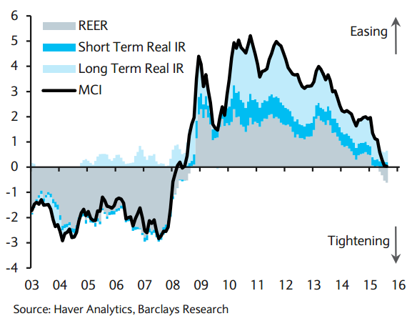 Risks to Britain's financial stability have risen over the past three months, driven by developments in China and other emerging markets. The combination of low inflation, the consequent rise in real interest rates and GBP appreciation have led to a considerable tightening of UK financial conditions over the past year. MPC members have repeatedly expressed concerns about the disinflationary effects of the more than 20% REER appreciation since March 2013.