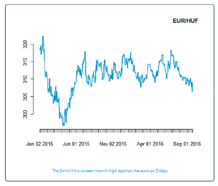 The Hungarian forint hit a fresh 16-month high on Friday, against the euro, following improved economic outlook rating by the Standard & Poor amid further support from the Federal Reserve’s decision to keep the key interest rate unchanged.
