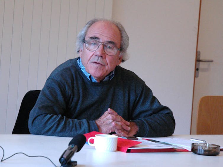 Jean Baudrillard lecturing at European Graduate School, Saas-Fee, Switzerland, June 2004. Wikimedia commons
