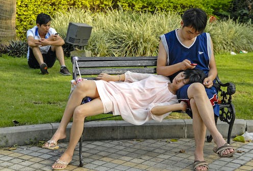 Some younger rural migrant workers ‘get girls easily’, but have no intention of staying in a relationship or getting married. Zhan Youbing, Author provided