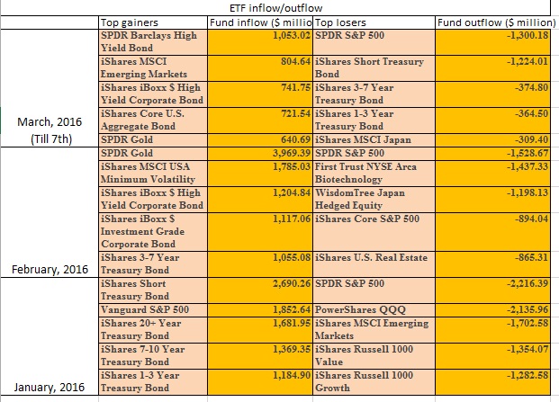 While aggregate data shows, Gold ETFs stand out in terms of inflow this year, while equities seem to have suffered worst. Investors poured $5.57 billion so far into SPDR Gold and withdrew about $5.05 billion from SPDR S&P 500.