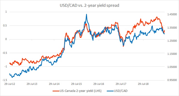 While the spread has narrowed steadily from +300 basis points (bps) in January 2015 to -106 bps as of September 2018, the New Zealand dollar has been pretty volatile around the spread. However, from the chart, it’s quite clear that the direction of the spread is playing a crucial role over the medium to long term.