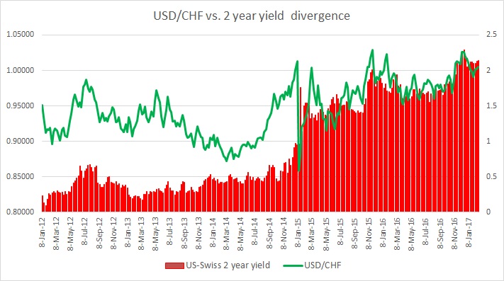 Unlike the euro or the pound, the Swiss franc is considered a safe haven currency; hence the yield relation sometimes gets overlooked.