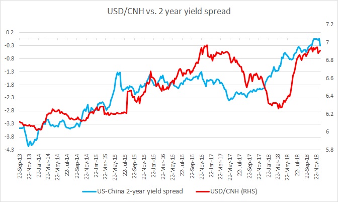 In November, the spread narrowed further sharply from -25 bps in the last review to -3 bps but the yuan’s decline has not been that sharp. The yuan is currently trading at 6.953 against the USD.