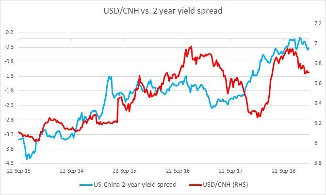 - This chart shows the relation between the U.S. - China 2-year yield spread and the Dollar/Chinese yuan exchange rate since 2013. It is visible even with naked eyes that the two has enjoyed a very close relationship. It can also be seen that the infamous August 2015 devaluation of the Chinese yuan by the People’s Bank of China (PBoC) that led to a global financial turmoil could very well be the result of rising U.S./China 2-year spread.