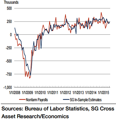 "The household survey is expected to echo the anticipated upbeat payroll statistics. With those finding work (210K) projected to eclipse new entrants into the labor force (125K), the civilian unemployment rate likely moved one tick lower to a new cyclical low of 5.2%", says Societe Generale.