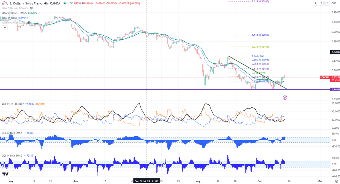 The pair is trading above 34 and below 55 EMA in the 4-hour chart.