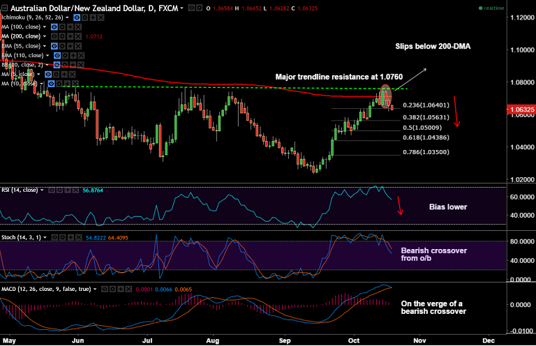 - Our previous call (http://www.econotimes.com/FxWirePro-AUD-NZD-edges-higher-from-session-lows-at-10621-downside-intact-till-200-DMA-resistance-holds-352781) is progressing.
