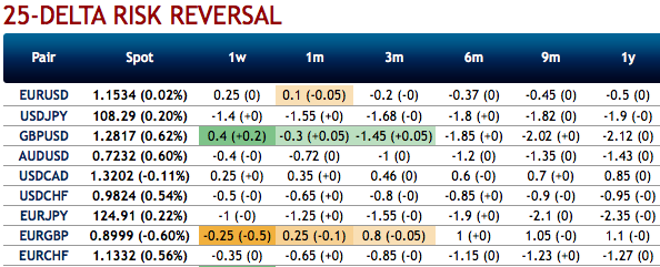 The positive bids in the shorter tenors have been observed to the bearish risk reversal atmosphere in the GBP OTC markets, this is interpreted as the hedgers are keen on bullish risks in the short-run, whereas the long-term bearish outlook remains intact.