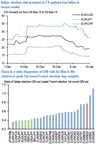 Italian election risk premia have continued to slide this year (refer above diagram), and yen-crosses, in particular, have been the largest casualties of the re-pricing.