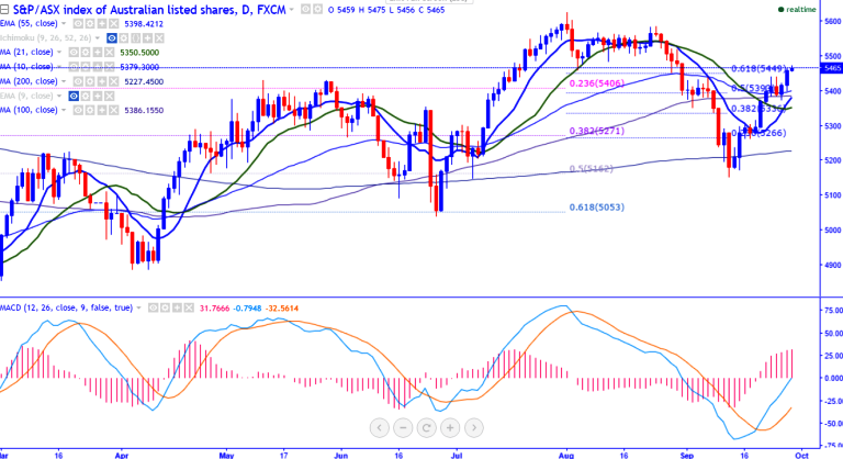 - The index has broken 61.8% retracement level at 5450 and jumped till 5475 at the time of writing. It is currently trading around 5468.