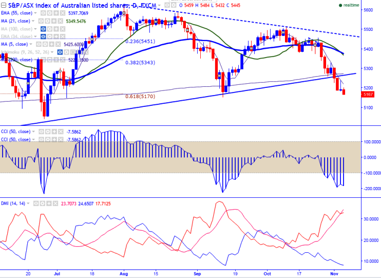 - ASX200 faces minor resistance at 55- H EMA and it should close above that level for minor jump till 5265/5300 .