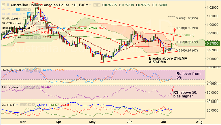 Support levels - 0.9763 (21-EMA), 0.9748 (50-DMA), 0.9720 (5-DMA)