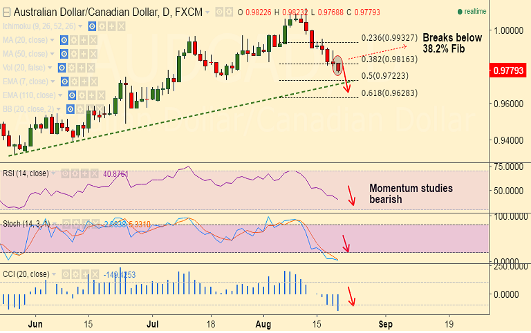 - The pair is now trading below 50-day MA at 0.9785 which is immediate resistance ahead of 0.9816 (38.2% Fib).