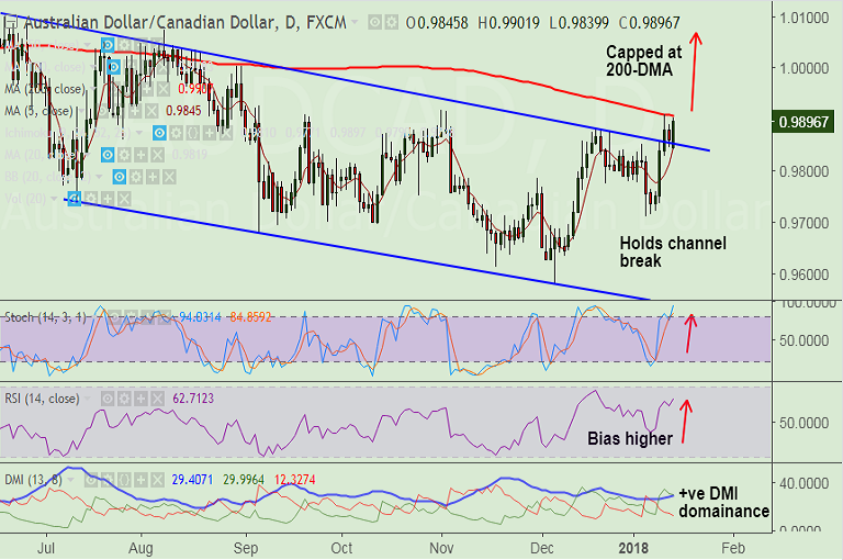 - Price action has shown breakout above channel top at 0.9855, raising scope for further upside.