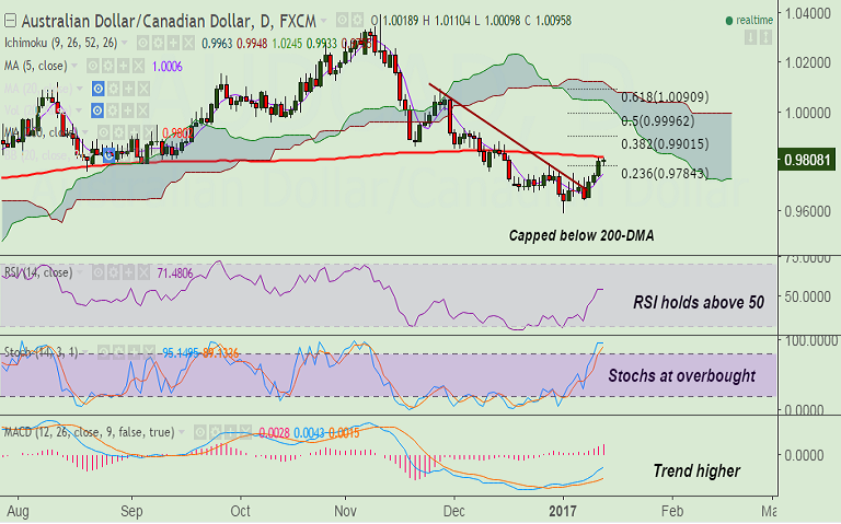 Support levels - 0.98, 0.9784 (23.6% Fib of 1.0397 to 0.9595 fall), 0.9747 (5-DMA), 0.9717 (20-DMA)