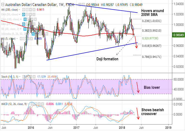 - We see bearish invalidation only on retrace above 200W-SMA at 0.9815.