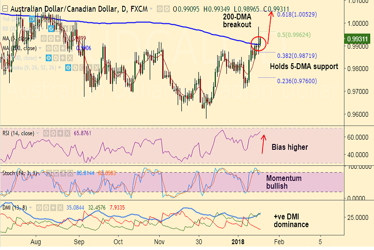 - AUD/CAD closed above 200-DMA on Wednesday's trade, scope for further upside.
