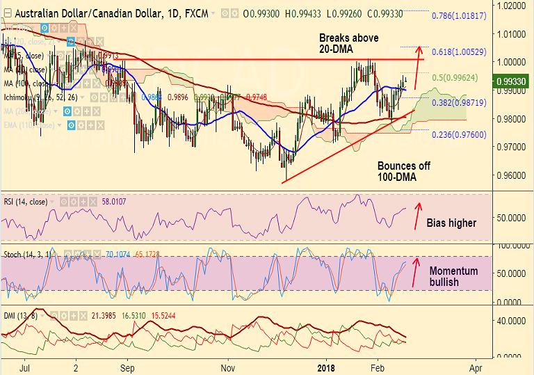 - AUD/CAD is extending break above 20-DMA, we see scope for further upside.
