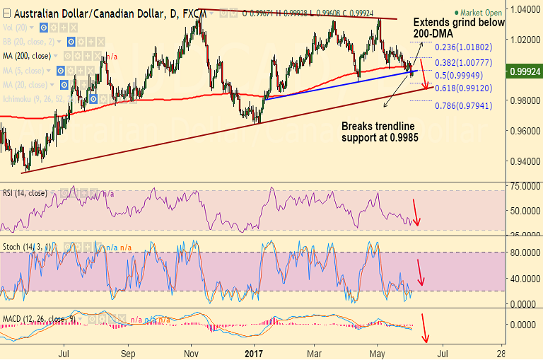 - AUD/CAD is extending grind below 200-DMA at 1.0025, bias lower.