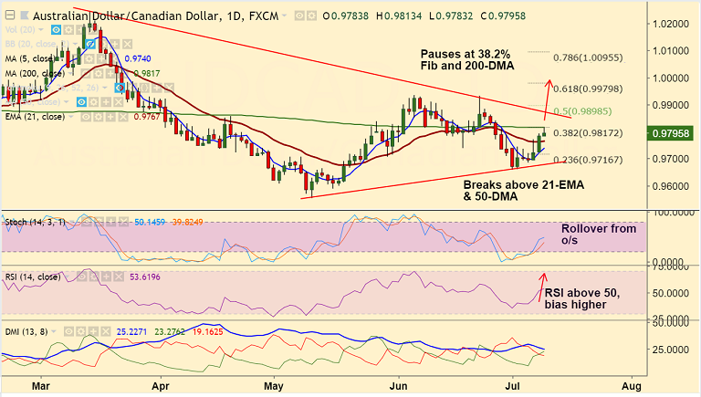 - AUD/CAD closes above 21-EMA, raising scope for further upside.