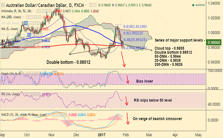 - The pair remains pivotal around 0.9826 levels (200-DMA), break below will accentuate weakness.