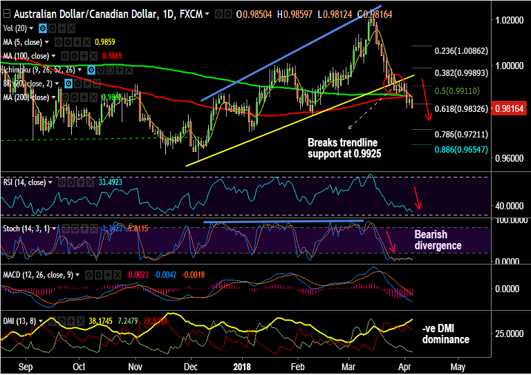 - We see some consolidation below 200-DMA at 0.9867, decisive break below 200W SMA at 0.9817 could accentuate weakness.