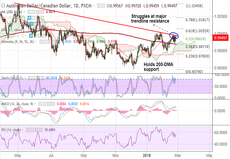 - AUD/CAD has seen repeated rejections at major trendline resistance currently at 0.9975.