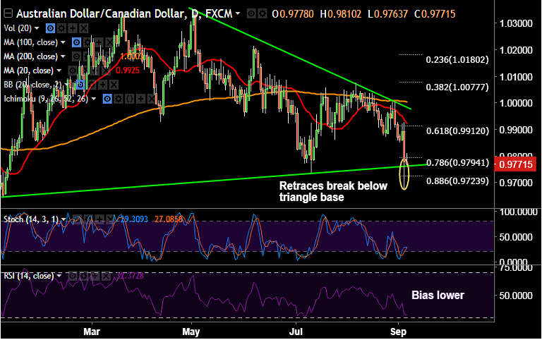 Call update: Our previous call (http://www.econotimes.com/FxWirePro-AUD-CAD-rejected-at-highs-cloud-weighs-on-upside-good-to-short-rallies-884296) has hit all targets.