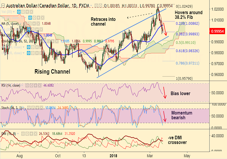 Resistance levels - 1.0048 (converged 5&20-DMA), 1.0086 (23.6% Fib), 1.0136 (Mar 7 high)
