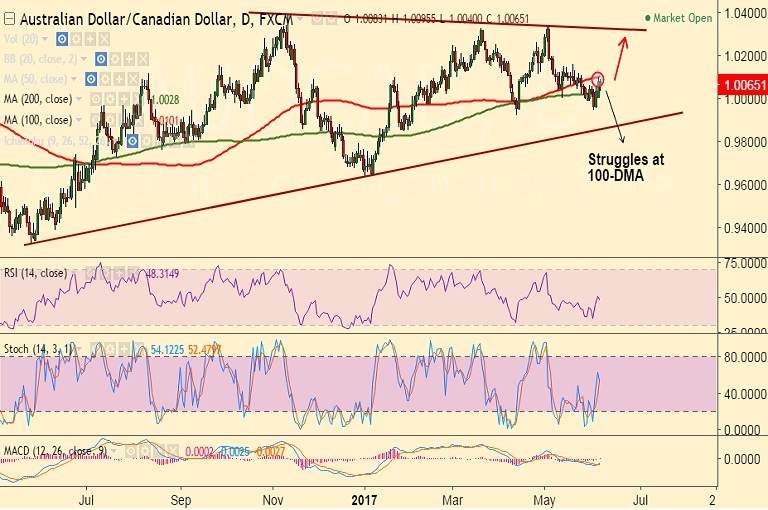- The pair is currently struggling at 100-DMA at 1.0101, break above is required for further upside.