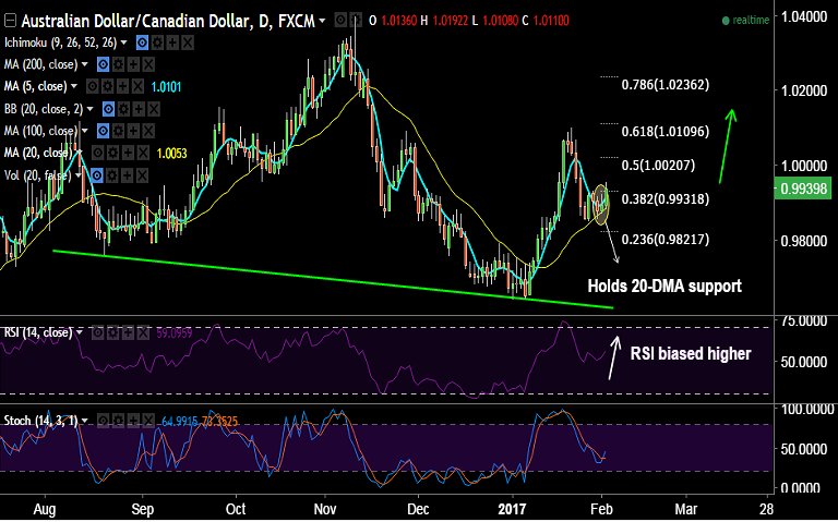 - The pair has held strong support by 20-DMA and we see weakness only on break below.