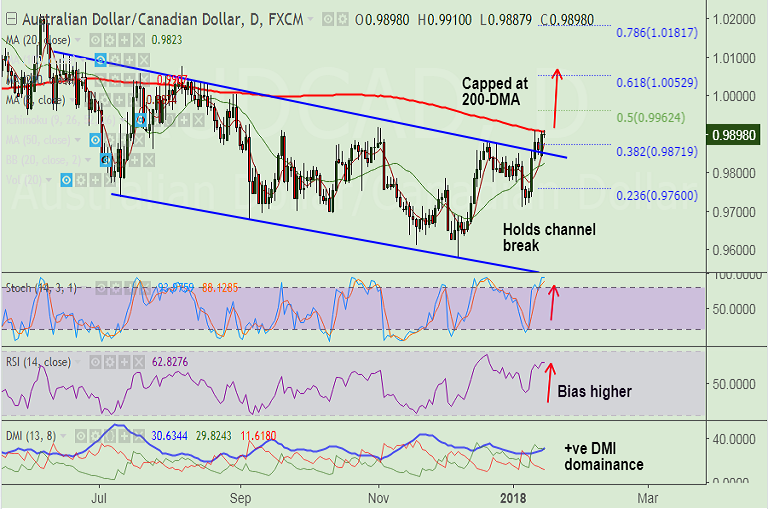 - Price action has shown breakout above channel top at 0.9855, raising scope for further upside.