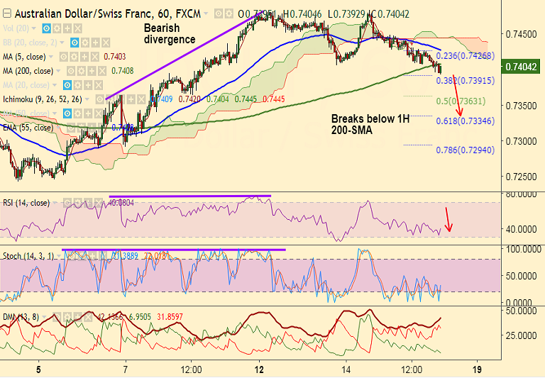 Call update: Our previous call (https://www.econotimes.com/FxWirePro-AUD-CHF-slips-below-hourly-cloud-eyes-1H-200-SMA-at-07395-stay-short-1204275) has hit TP1.
