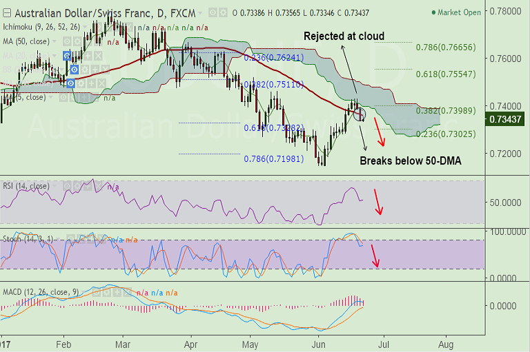 - Close below 50-DMA at 0.7365 has raised scope for further drag lower, test of 0.73 (23.6% Fib) now likely.