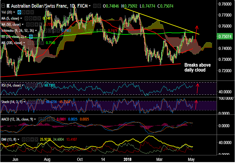 - AUD/CHF has shown a breakout above daily cloud, Aussie buoyed by upbeat trade balance data.