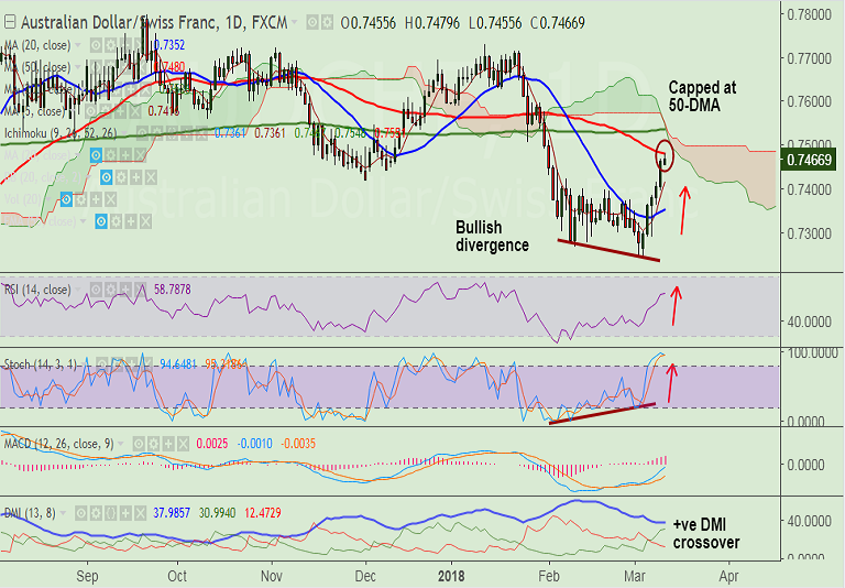 - AUD/CHF is extending gains for the 6th straight session, bullish divergence keeps scope for further upside.
