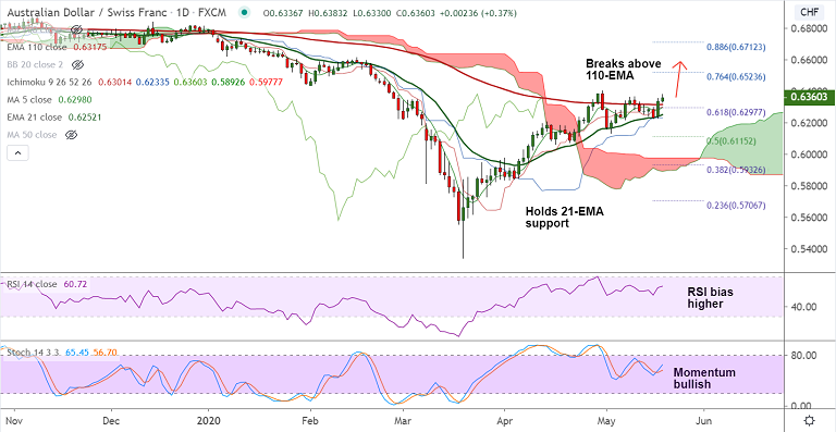 The pair has closed above 110-EMA on Monday's trade and is set to extend gains.