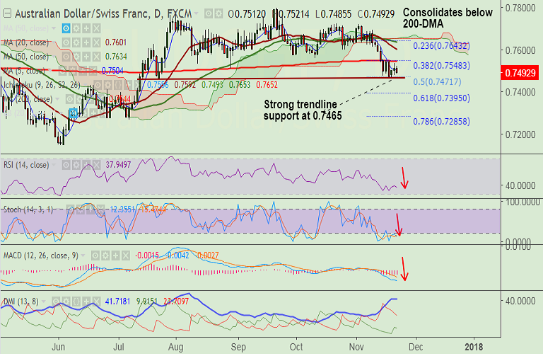 - Price action rages below 200-DMA (0.7544) and daily cloud, bias lower.