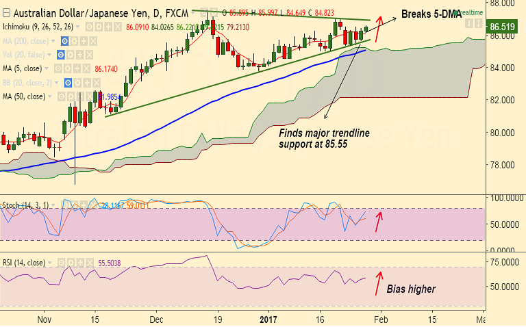 - Support levels - 86.05 (5-DMA), 85.55 (trendline), 85.0 (Jan 17 low), 85.05 (50-DMA)