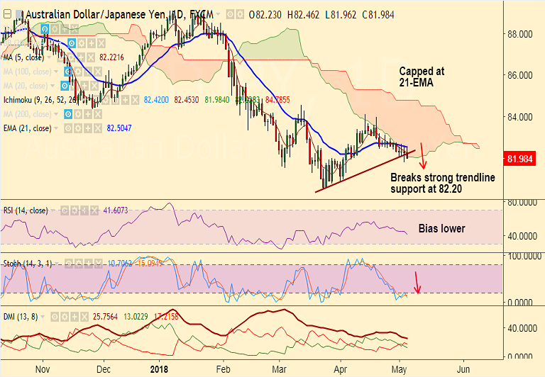 Support levels - 81.75 (May 3 low), 81.25 (Mar 19 low), 80.50 (Mar 23 low)