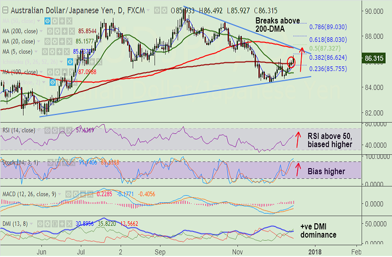 - The pair has shown a decisive break above 200-DMA at 85.85 and we see scope for further upside.