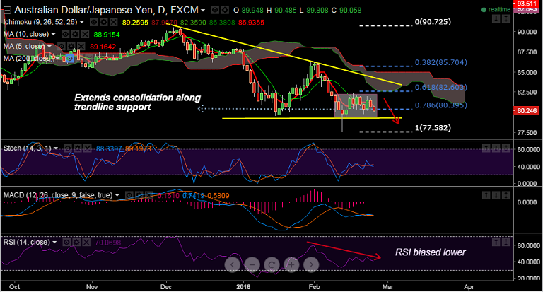 - Immediate resistance is located by 5-DMA at 80.79, while 80 is immediate support on the downside ahead of 79.82 (Feb 19th lows).