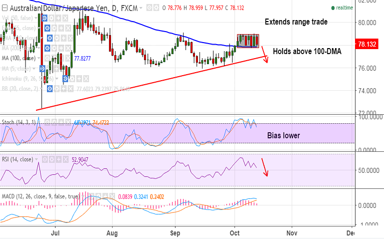 - AUD/JPY upside capped at 79 handle, pair is extending range trade since Oct 4th.