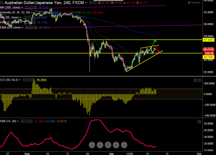 - The pair's major resistance is around 86.35 and break above would extend gains till 87.25.