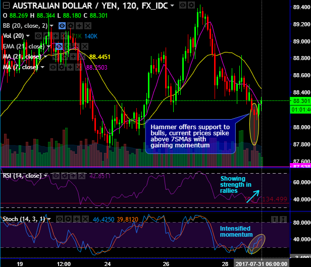 Hammer pattern candle has occurred at 88.140 levels (on 2H charts).