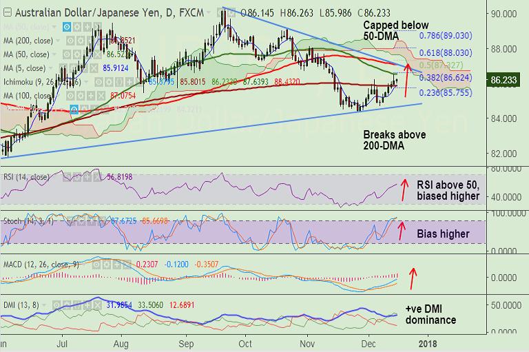 - Upside was capped below 50-DMA at 86.52, breakout to see resumption of upside.