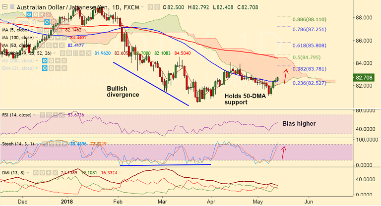- Aussie is extending last week's recovery, AUD/JPY breaks above 50-DMA resistance at 82.41.