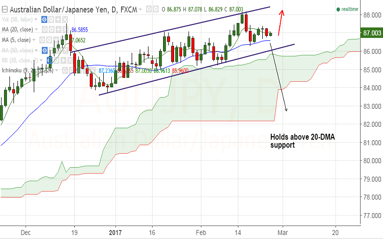 Resistance levels - 86.55 (20-DMA), 86.74 (5-DMA), 87, 87.53 (Dec 15, 2016 high)