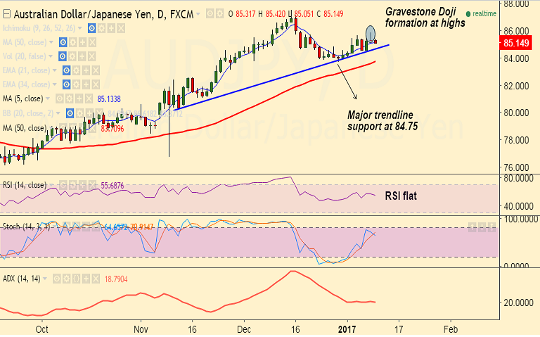 Support levels - 85.13 (5-DMA), 85 (20-DMA), 84.75 (trendline)